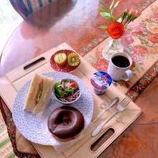 今日の朝ごパン(๑´ڡ`๑) ツナと玉子とハムのサンドイッチ🥪 生どーなつチョコ🍩 サラダ🥗 キウイフルーツ🥝 パルテノギリシャヨーグルト(🫐) 珈琲☕ こんにちは😊 久しぶりにのんびりした 朝ごパンでした♪ 毎日が慌ただしくて バタバタしているので💦 平日のお客さまの入りは 落ち着いていますけど 土日はヤバいです😓 お昼食べてる時間もないので 飲まず、食わずでいたりします😣 真冬にこんな感じでは 夏になったらどうなるかな😅 少し心配してます笑笑