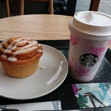 スターバックスラテ + シナモンロール (^_^)/