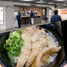 九州上陸~!! 大分方面への特急待ちの合間に昼飯。 かしわごぼう天うどん 九州に来たら、やっぱりこれです!!