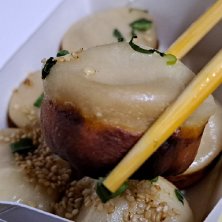 ランチは白楽の『六角橋焼小籠包』、今日も蒸し暑かったので冷やし中華と焼小籠包にしました。 まずは焼小籠包、熱々のスープに気を付けながら頂きました。次に冷やし中華、胡瓜や葱などの野菜は大きめにカット、醤油ダレには黒酢を使っているみたい。ちょっと個性的で美味しい冷やし中華でした。 冷やし中華+小籠包3個セット 1,155円