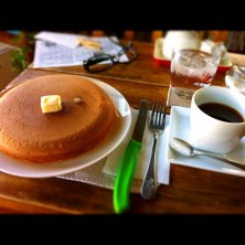 憧れの大きな大きなホットケーキとカラスのパン屋さん珈琲! 大きい!!!! 美味しそう(^^)
