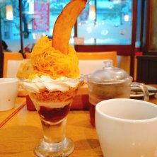 何故かヘロヘロで午前中いっぱい寝てしまった土曜日。 のろのろ起きてファミレスでごはんとデザート。 おいもミニパフェです。 さつまいも美味しいですよね。下に隠れてる紅茶ゼリーもあっさりしてて良かったな。
