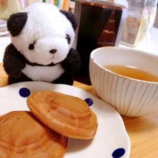 あさおやつは、おくのほそ道三千里と焙じ茶。福島にある三万石というお菓子屋さんの和菓子。どら焼きぽいけどしっかりした生地に白あんが入ってます。UFO型は芭蕉の旅傘イメージだそう。お茶筒変えました。
