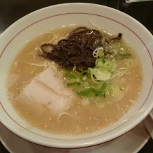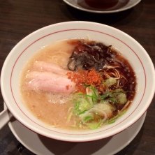 横浜駅から東神奈川方面に出た第二京浜?沿い。ラーメン専門店というよりは中華料理店という感じですが、もつ鍋もやっているというw。 替え玉1回無料の九州ラーメン「黒」。マー油が浮いてます。