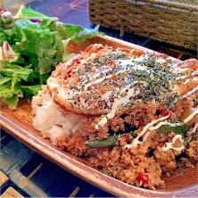 国分寺 北口カフェのガパオごはん(単品850円、ランチセットは1000円) ソファでゆったりくつろげるお店でした! カフェのガパオってどういう味付けなんでしょう? 醤油?っぽい味もしたような...美味しかったです。