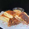 念願のファラフェルサンド屋さんにきた! ファラフェルはひよこ豆などで作るコロッケみたいなものでそれがサンドに入ってる訳なのですが私の目当てはフムス。 ひよこ豆のペーストなんですか海外に行った時にどハマりし、冷蔵でスーパーで売られてるものをスーツケースに入れて持ち帰った程w ここのフムス、よきです! 某社オリジナルのは豆感が強すぎるんですよね。ここのは野菜のペースト、という感じだし味もしっかり。野菜がたくさんすぎてかぶりつくのが大変なこのサンドにドンピシャです。 (これでサイズはハーフです)