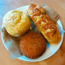 伊予柑パンが気になって購入。 +コーンパンとカレーパン。 伊予柑パンは伊予柑ジャムが練り込んであり、甘さと苦味が絶妙でした♪ コーンパン、カレーパンは息子がペロリと食べてしまいました。パン好きな息子。
