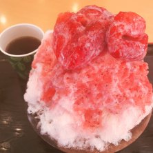 無性にかき氷食べたくなったので! シャロンのかき氷!! 果肉たっぷりのいちご蜜がかかったふんわり氷。 美味しい! 明日からの中国出張の英気吸収!! (後ろに写っているのは無料でいただけるコーヒー^ ^