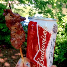 武蔵野市立美術館で川上澄生展みたあと、井の頭公園の池のほとりで焼き鳥&ビール^^ いせやじゃなくアトレの焼き鳥屋のハラミ。外飲みは軽いのがよいから何年ぶりかのバドワイザーは甘みがあって意外と好き。
