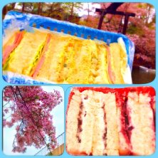そーいえば… 先週末やっと花見に行ってきました。 てな訳でお花見弁当。 ✴︎玉子チーズサンド ✴︎魚ニソチーズサンド ✴︎水切りヨーグルト×カシスジャム ✴︎水切りヨーグルト×あんこ しょっぱい系は辛子マヨ、甘々系のヨーグルトにはほんのりメープル入り(º﹃º)ෆ⃛ೄ