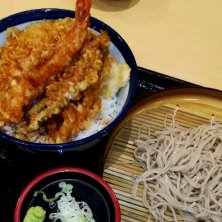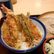 東京最後のお昼はてんやの天丼と小そばセット! おそばが少ないのであきらめてその分天丼を豪華にすれば良かったかな?