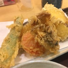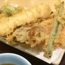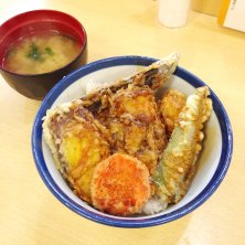 野菜天丼。 食べたかったんだよね〜とオーダー後ににやにやメニューを眺めてたら、あ!レンコンが入ってない! ちょっとがっかり。 ほくほくレンコン食べたかったな(T . T)