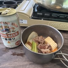 キャンプ2日目は水炊き。野菜と鳥肉煮ただけ。