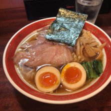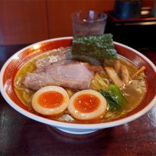 ミシュランガイド横浜川崎湘南2015に掲載された行列ができる人気店、【懐や】に訪問しました。 券売機を眺めるとスープは醤油と塩の2種類。麺は細麺と平打ち麺から選択となります。本日は《特醤油ラーメン 平打ち麺》をポチりました。 スープの出汁はおそらく鶏ガラが主体。雑味のない透き通る味わいながらも旨味は濃厚。ミシュランに掲載されるのも納得の完成度。 麺は適度のコシがある中太縮れ麺。思ったほど平たくありませんでした。平打ち麺も悪くないがこのスープは細麺の方が合いそうな気がします。