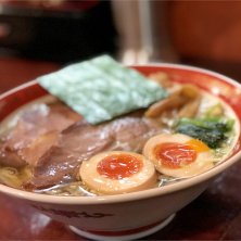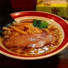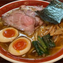 人気店の特醤油ラーメン、細麺。1時間以上並んだ。チャーシューが特に◎