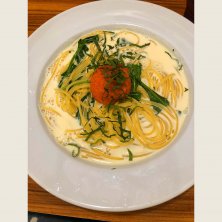 【明太子の豆乳クリームパスタ】 ¥990 どうしてもパスタが食べたい日だった(笑) 明太子の辛さと豆乳のクリーミーさがいい感じで美味しかったー(´ε` )♡