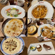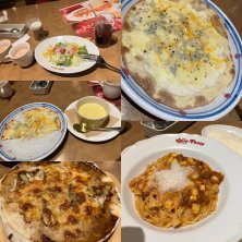こんばんは🌉 家の近所のジョリーパスタに彼と夕飯🍽️ お腹いっぱい サラダとコーンスープ ビーフシチュードリアと 感動ボロネーゼのフィットチーネ彼と半分こ パスタは、彼にほぼあげました ドリンクバー クワトロピザ🍕 私は、ドミノピザよりジョリーパスタのピザの方が好き❤️ ここのファミリーレストランだとバスの時間気にしないで済む 歩いてすぐ家に帰れますから