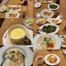 こんばんは🌉ジムの帰り仲良し友達と家の近所のジョリーパスタで、夕飯 サーモンハラスといくら パスタ🍝フィットチーネ友達と半分くらい サーモンカルパッチョ ほうれん草ベーコン炒め アップルパイ友達と半分こ もう自宅です
