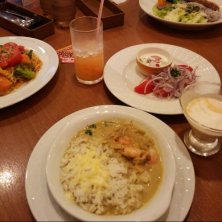 お腹壊して断食(ーー;)からの~苦味を摂ると良いらしい。ある意味正露丸ってそういうことか?苦味は季節等によって違うみたいだけどね~そんな中、昨日またまたまたまた集合して四時間♪苦味どころかリゾット。ドリンクバーも爆飲せずよもぎ茶。雑炊と迷ったけど401カロリーもあってやめました~リゾットは267カロリー…何がこんなに違うのかなぁ?