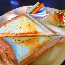 お昼は那覇のワーキングカフェでホットサンド。よい風が吹いていて気持ちいなあ。