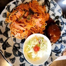 本日のランチ ナポリタンとハンバーグのセット 思い立って福島エリアのお不動さまを回ってました。最終目的地のいわき市の常福寺までいってお昼に。 なんとなくで決めた洋食屋さん。 隣のテーブルに運ばれてきた量と、メニュの食べきれない場合はお持ち帰りできますの案内に、まさか今日も…となったけど、お隣さんは大盛りを頼まれてたようでした。あーびっくり。 近くにすんでたらメニュー制覇したくなるお店でした。 オムライスも美味しそうだったので、いつかまた行きたい…いつか…