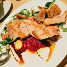 赤茶豚のロースト。 ビーツのソースにはポルチーニの香り。