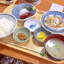 お昼ごはんは万福でマグロぶつとモツ煮 牛すじ煮を頼むことが多いけど、今日はこちら。いろんなものが食べられて大満足!