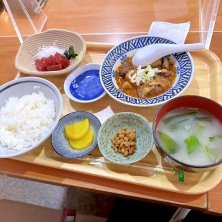 今日のお昼は万福にて、マグロブツと牛すじ煮定食ごはんすくなめ。 牛すじ美味しかった〜♡元気になった!