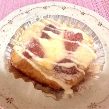 マスカットクロワッサン 月曜の朝ごはん。クロワッサンの中にホイップクリームとマスカットが入っていて、冷たいまま食べるんですが生地がめちゃめちゃ美味しいんです❤️ここのパン屋さん、ほんと何食べても美味しいなぁ😋