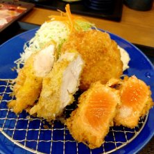 サーモンのレアカツ🐟️ささみカツ、サーモンクリームコロッケ🧆 サーモンフェアやってたので、いつもならトンカツとエビフライにするけど今日はコレ💡 レアカツ美味しかった〜😋