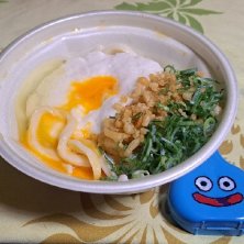日替わりランチうどん ぶっかけ温玉とろろうどん イカ天 昆布おにぎり おにぎりはパックに入っていたのでお持ち帰り 放課後勉強の腹ごしらえ用に 新横浜