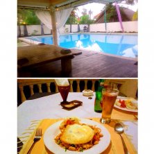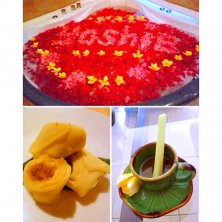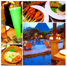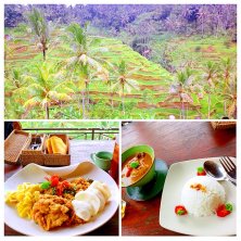 バリに来たらまずはフランジパニエステ٩(๑ơలơ)۶♡ランチも美味しいです♪写真はクレープとジンジャーティ☆ 何故かいつも自分の名前が花ビラで描かれたお風呂…笑!可愛い子が一生懸命作ってくれてます。笑