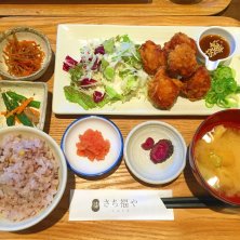 鶏とたっぷり根菜の甘酢あんかけ定食 今日は残業明けで疲れちゃったので晩飯は外食☆