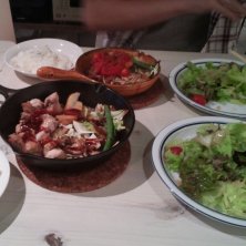 手前は日替わりグリルランチ(鶏肉のバーベキューソース)980円 奥はシャリアピンハンバーグランチ980円 雰囲気もオシャレで飲み会に使いたい感じ(・∀・) 何より家から近いんです(´∀`)
