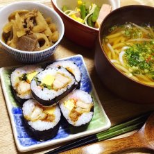 ゆかり食堂♡ 恵方巻き唐揚げ入り、うどん! 節分でしたー*ଘ(੭*ˊᵕˋ)੭* ੈ✩‧₊˚