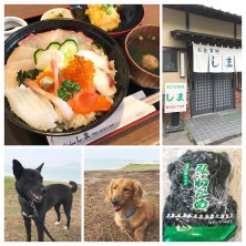 ●海鮮丼定食(すり身揚げのあんかけ・いわしつみれのお吸い物付き) 5年ぶり?の志賀島。 そして2度目の「キッチンしま」で海鮮丼〜♪ 小鉢とお吸い物が付いて1100円。前より100円くらい上がったかな? でもこの内容なら格安! 自宅みやげは島の「弘」地区沖で獲れた、特産のワカメ。 天然で肉厚でずっしり入ってる(^-^) 曇り空で海の色はイマイチだったけど暑すぎなくてよかった。