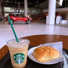 仕事の話し合いが延びてお腹ぺこぺこ 空腹のままスーパーに行ったら あれもこれもと買ってしまいそうなので⚠️ スタバにて *コーヒーフラペ *サーモンフォカッチャ イングリッシュマフィン食べようと思っていたら このサーモンフォカッチャ1個しか もう無かった!! ゴーン元会長のお膝下 日産グローバル本社ギャラリー内にある こちらのスタバ 目の前の赤い車の前でマイクを持った PRスタッフさんが 『会場のみなさま こちらの車をご覧ください!』 と説明を始めたので 必然と私まで見られている気分😳