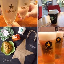 星集め✯ ✯ ✯ 最近星柄が気になって仕方ない この紙袋が欲しいが為に スタバでわざわざテイクアウト☕ 黒地に☆がカッコイイ~💕 一番搾りのタイアップも終わった事だし これから🍺はサッポロだな😎 いつから絵文字使えるようになったん?