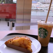 スーパーで買い出し前に スタバでちょっと休憩☕️ *スターバックスラテ *アメリカンアップルパイ🍎 日産本社ビル内にあるスタバ 本日、特別試乗会をやっているらしい まだ週半ばなのに疲れてヘロヘロ スーパーまでちょっと試乗させてもらえないかな🚗 車の免許証持ってきたし 免許取得後1年以上経っているし 試乗できる条件はクリアしている 10年以上運転していないけど やっちゃえ!私 ←いや、やりません。