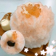 埜庵の「さくら氷」 ほんのり桜色の桜シロップが春らしい〜♡♡ ミニ白玉と可愛い♡桜ゼリーに心を奪われ店内へ♡(ㅅ´ ˘ `)♡ あぁ、皆さん写メってます。 p[◎]qω・´)パシャ♪ なんてフォトジェニックなかき氷なんでしょ笑 そして、お、お、美味しい!! しかも、中から水羊羹出てきました✨✨ 別添の練乳も掛けて、最後まで美味しく頂きました₊*̥(๑•͈౿•͈๑)ψ*̥✧ また食べたいな♡笑