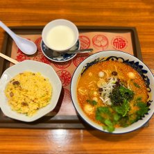 青山椒ラーメン半チャーハンセット パクチー大丈夫なら かなりおいしいと思う 杏仁豆腐も良い