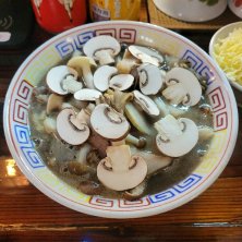 ラーメン246亭@青葉台にて8周年記念ウィーク 今週のスペシャル 樵のきのこソバ+チーズめし小。 きのこ尽くしの一杯が今年も登場。 ポルチーニ茸の香り高い濃厚スープに、きのこソテーをトッピング。きのこの風味が幾重にも重なるスープは縮れ麺によく絡み、チーズめしドボンで絶品きのこリゾット完成👍