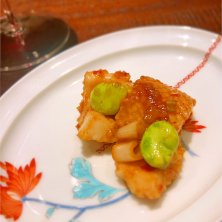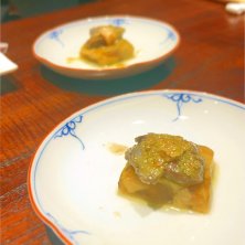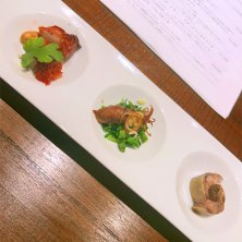 昨夜は普段からお世話になっているお客様達と会食でした♪ 前菜 焼き立て焼き豚 セリとホタルイカの海老味噌ソース 砂肝パテ巻き