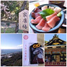 本まぐろ丼 久能山東照宮で今年の干支で 限定の御守りを頂きました 白馬の刺繍🐴 御利益有りそうです。 ロープウェイ🚡から いちご街道のハウスが見えます。 今日は遠くは御前崎まで見える🌊