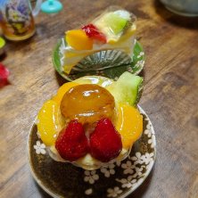 息子とパパのバースデーケーキを買いに行きました! ホールもあったけど、息子が プリンアラモードが食べたい!って言うので カットケーキにしました♪ 鬼滅の刃のチョコプレートが500円で売ってて、ヒヤヒヤしたけど、 欲しがることもなく、無事に買い物出来ました😋
