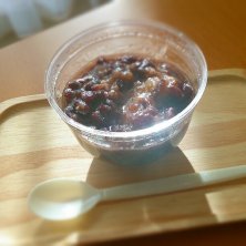 モスバーガー☆ 玄米餅のおしるこ♪ お持ち帰りはこんな容器に入ってくる。なんか可愛い~♪ 温まる~(*´∇`*)