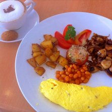 バリ島6日目の朝ご飯♪ ベジタリアンプレート!これ以外に4種類のパンが付いてます♫ 今日も朝から良いお天気。これから田んぼハイキングに行って来ます。(^-^)/