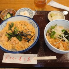 親子丼(ご飯半分) ぶっかけ 暑いと並ぶのも嫌になるんでしょう🥵 いつもの行列店に並びがありません✌️ 当方は嬉しい限りです😆 ランチが値上げされてましたが、1,000円から1,100円と許容範囲でした👍
