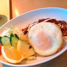 マリンロコモコ丼。いるかの見えるレストランでご飯ー。