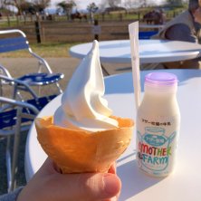 牛や馬を見ながら、ソフトクリームと牛乳。 仔牛にさわれた!可愛い〜。 息子が触ったのは羊、馬、仔牛、リクガメ、豚。カピパラやうさぎ、アヒルも至近距離で見られた。 はじめての牧場に大興奮の息子。楽しかったねー!